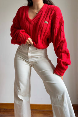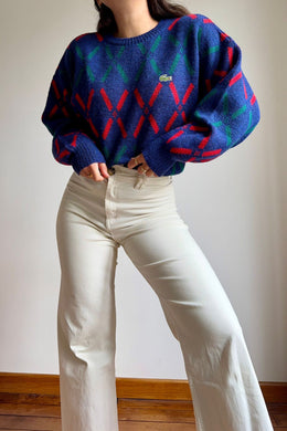 Pull Lacoste en grosse maille fabriqué en France dans les années 90' - M