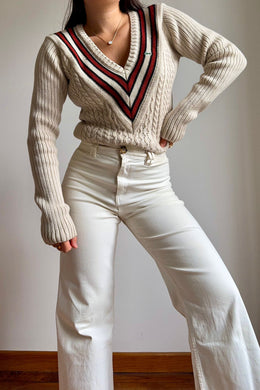 Pull col V Lacoste "Izod" des années 70' en cachemire - S