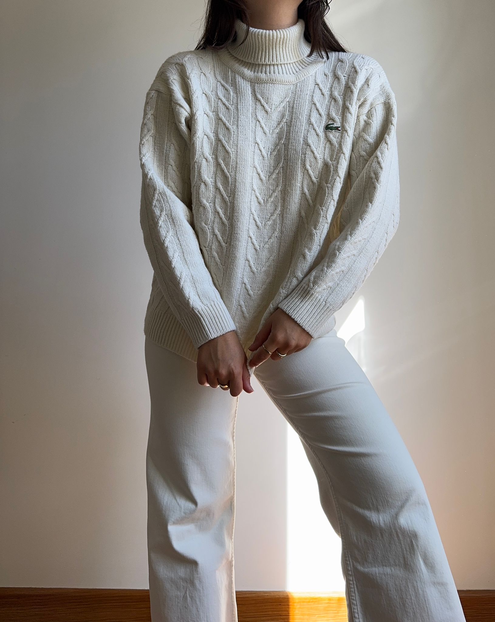 Pull col roulé Lacoste en grosse maille - S