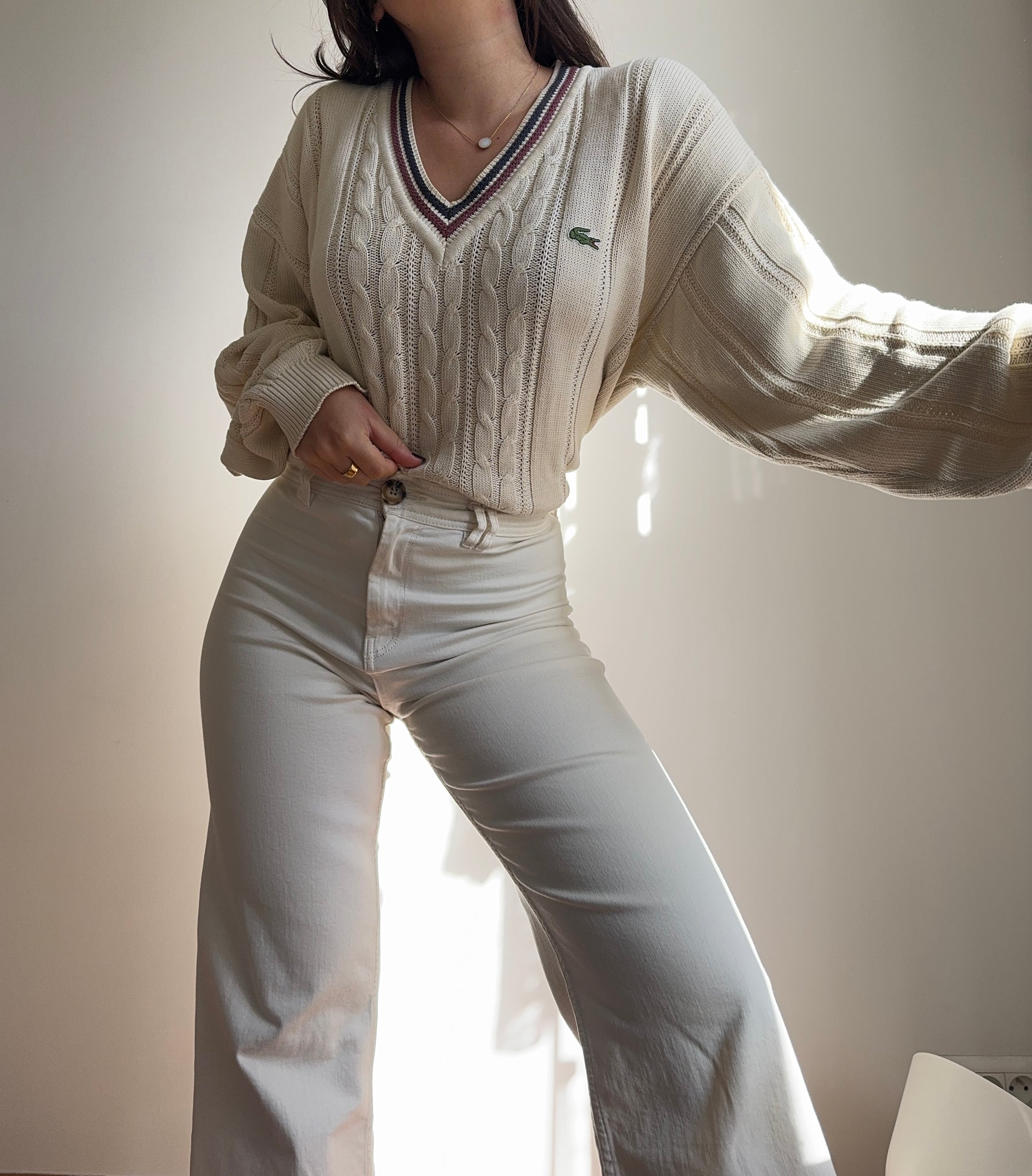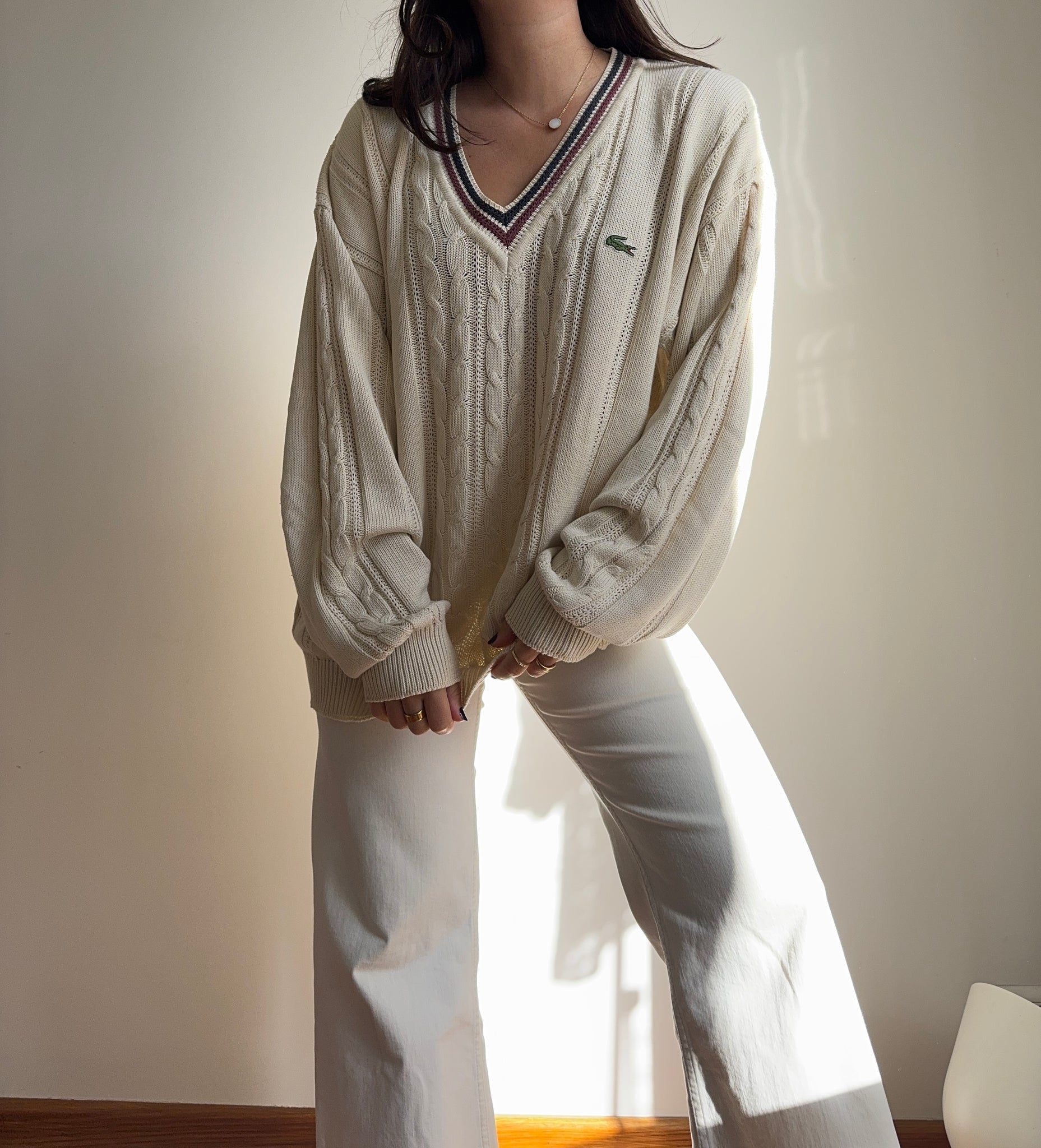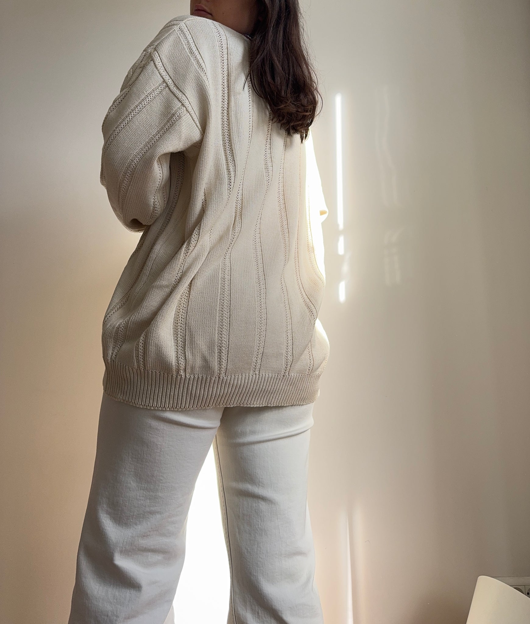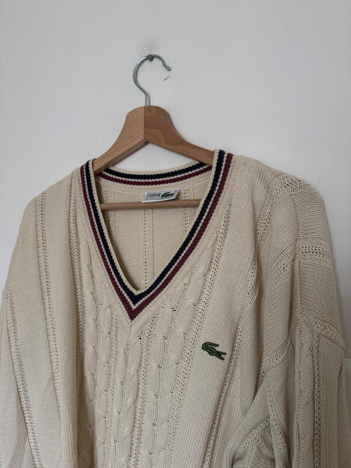 Pull col V en grosse maille fabriqué en France dans les années 80's - XL