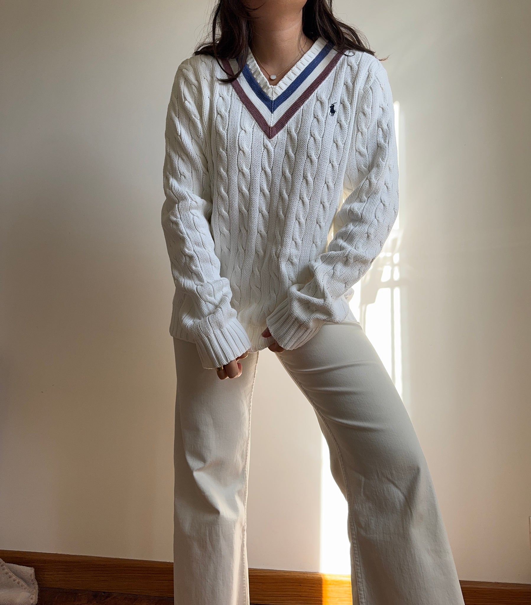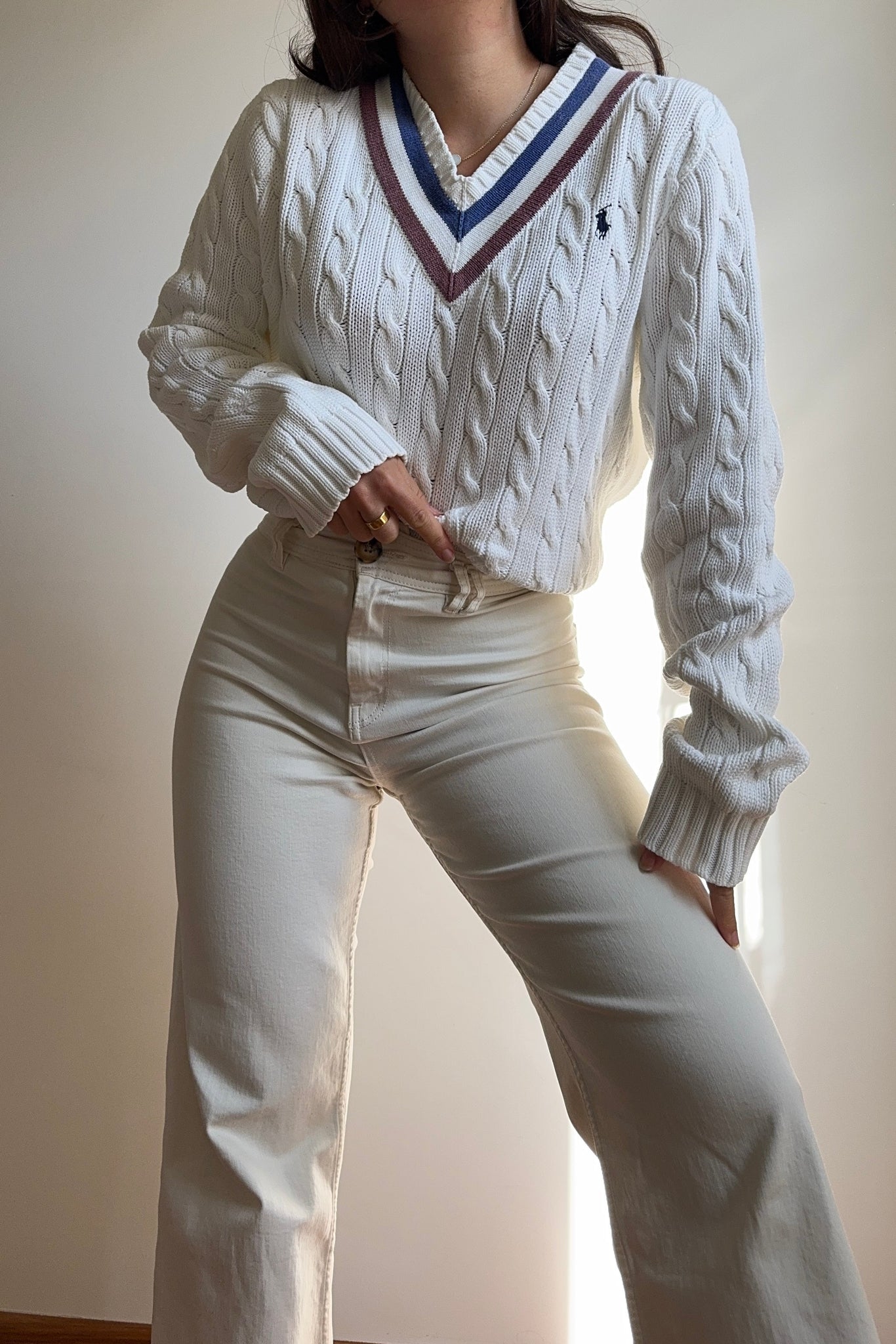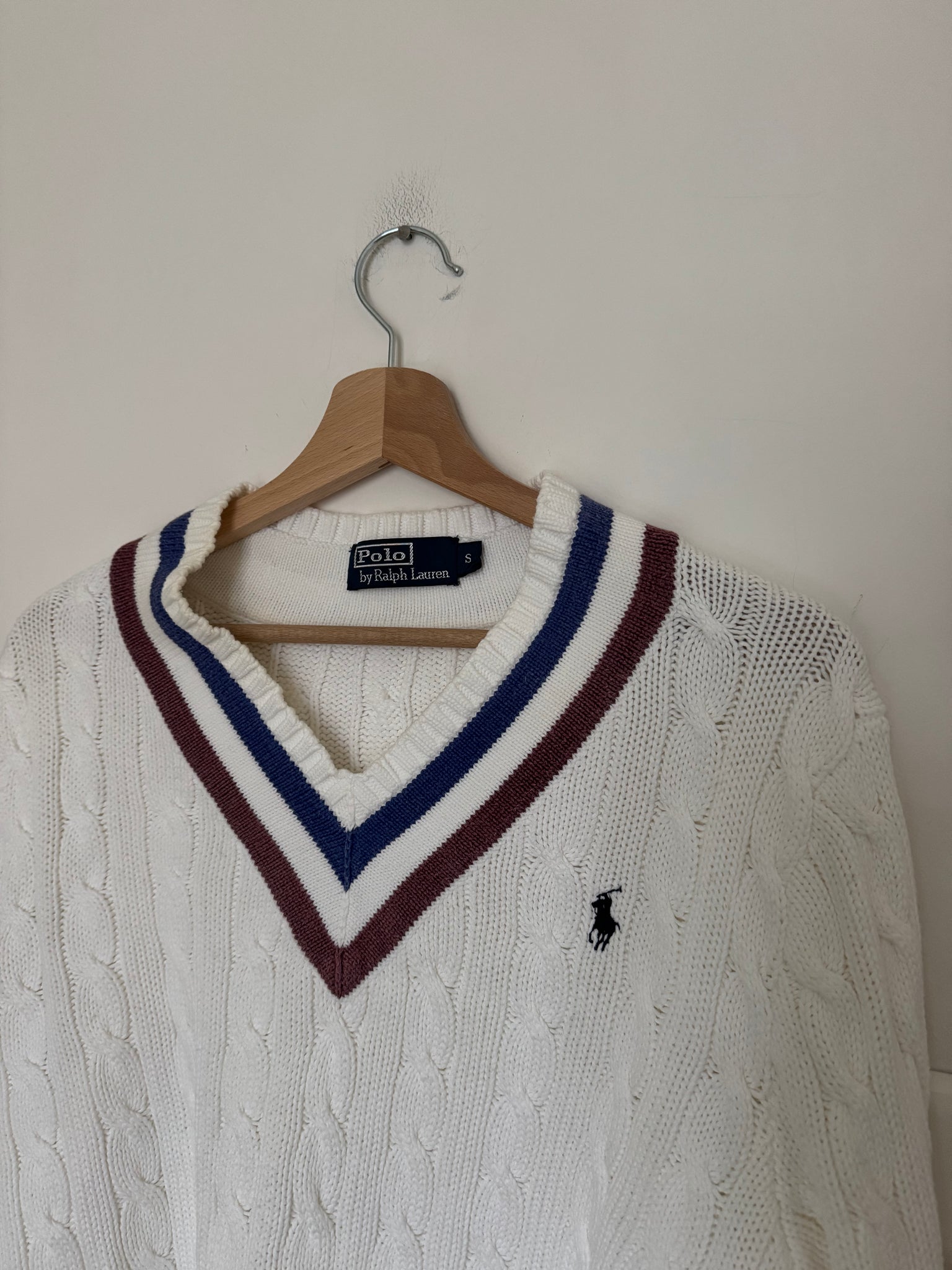 Pull col V Ralph Lauren en grosse maille tressée - S