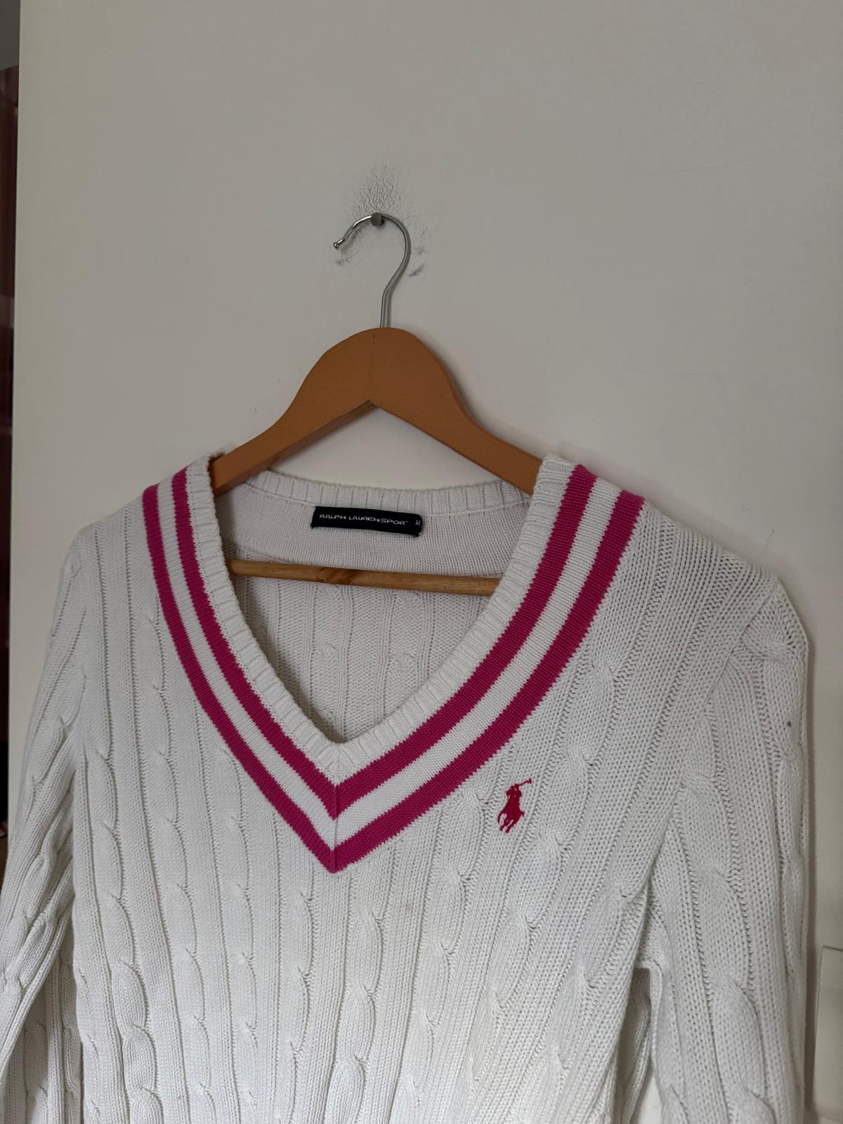 • Upload image to gallery, Pull col V Ralph Lauren à la maille tressée - M